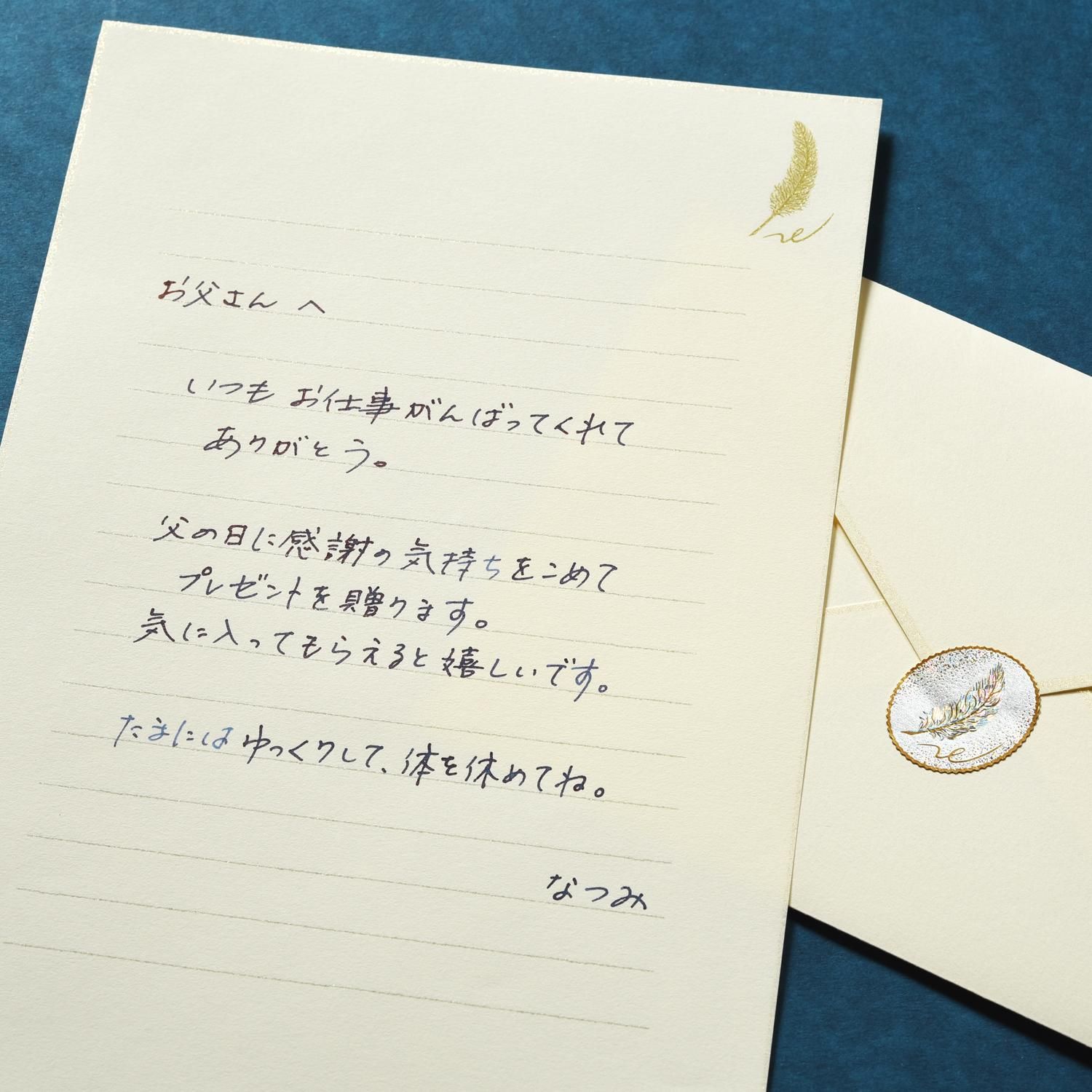 離れて暮らすお父様に贈るときや、お手紙でしっかりと気持ちを届けたいとき、メッセージをギフトとして贈りたいときには便箋と封筒がおすすめです。