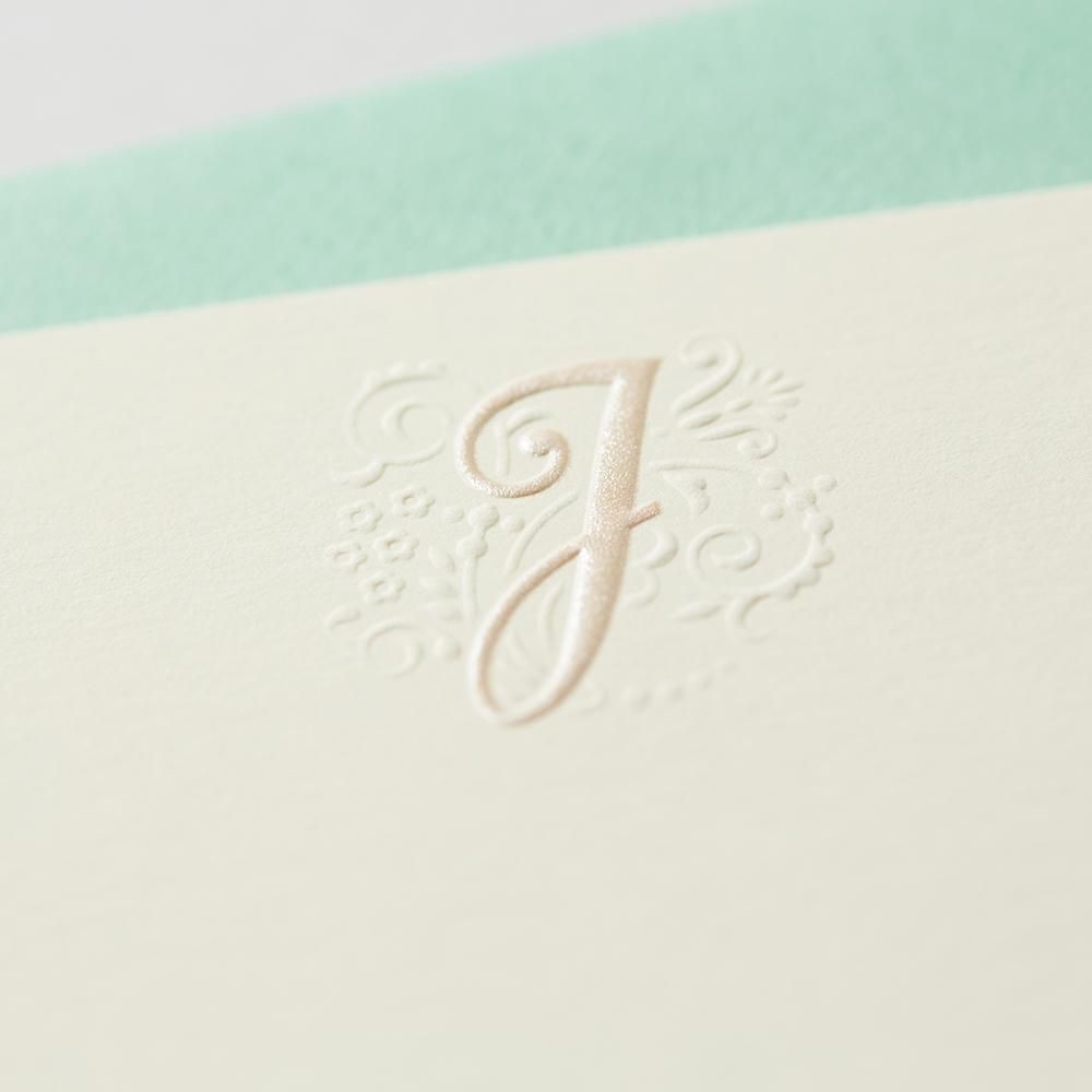 イニシャルデザインのショートメッセージカードと洋形1号のカラー封筒が4組入ったセットです。