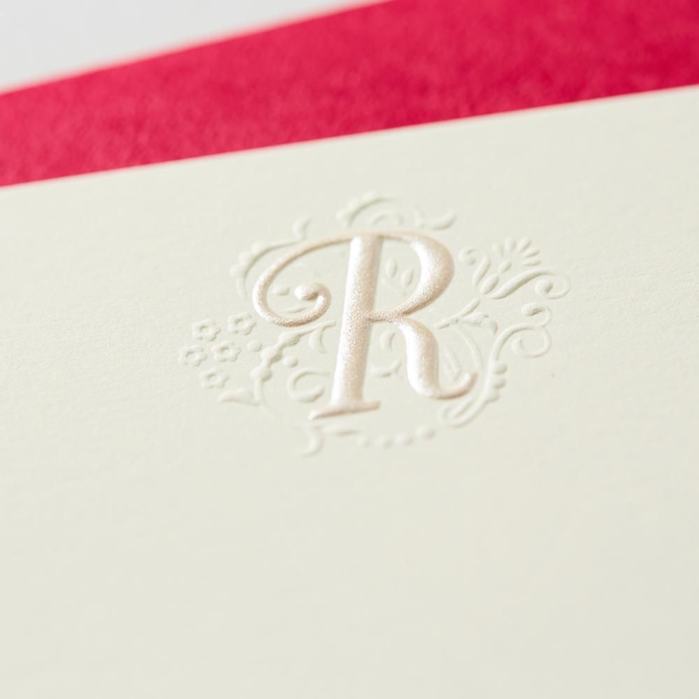 イニシャルデザインのショートメッセージカードと洋形1号のカラー封筒が4組入ったセットです。