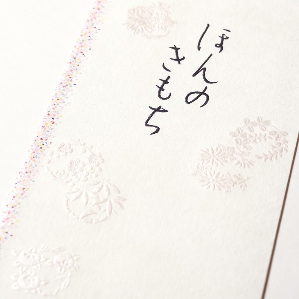 縁起の良い7種の和の植物が、パール調のシルク印刷と浮き出し加工で表現されています。