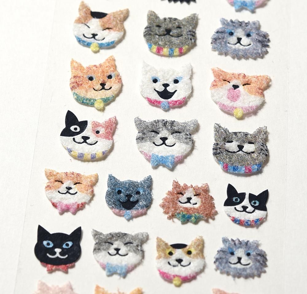 ふわふわ素材で色々な模様の猫の顔のシールです。