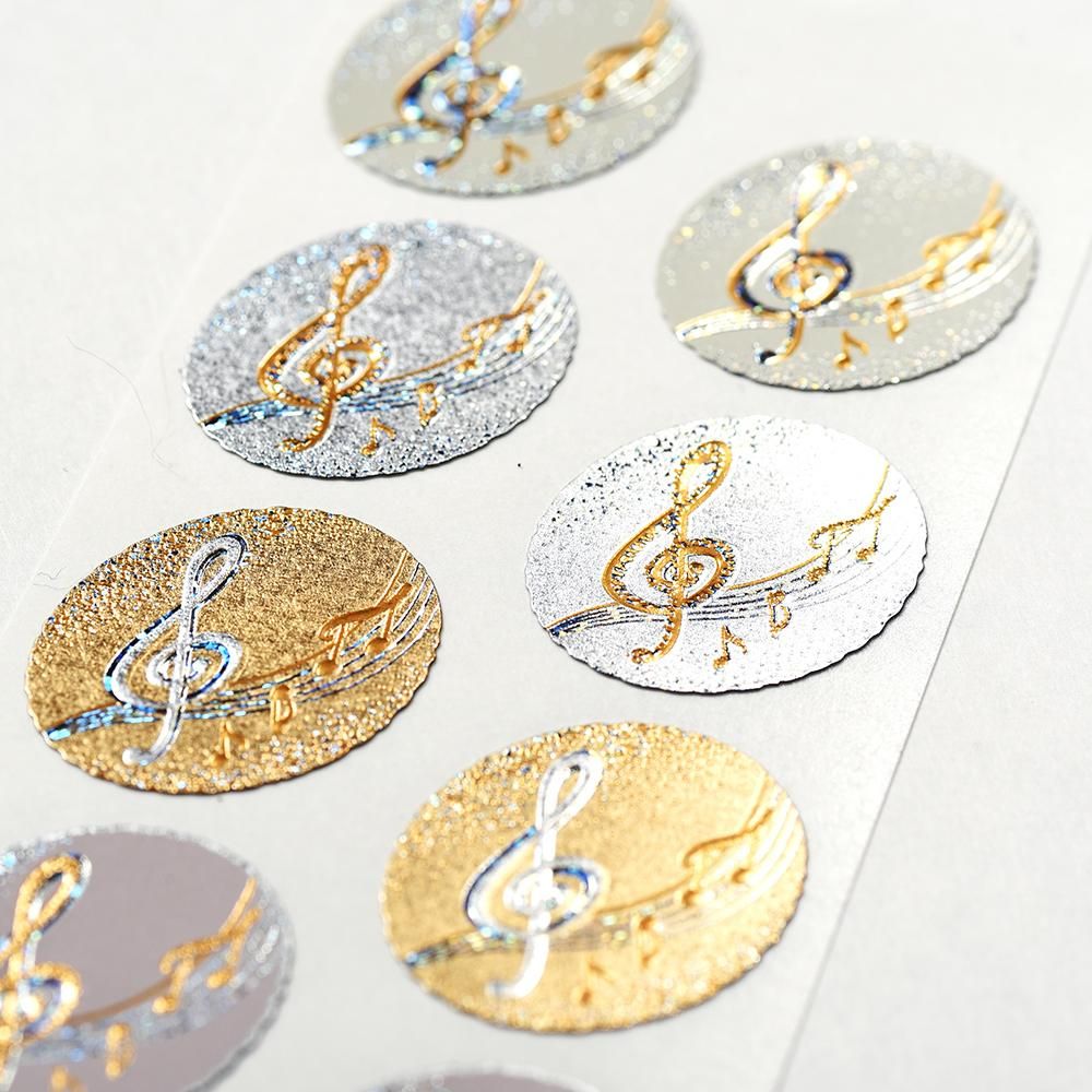 「音符」シリーズのカードや、音楽モチーフの便箋や封筒等のメッセージアイテムと合わせて、封シールやデコレーションシールとしてお楽しみいただけます。