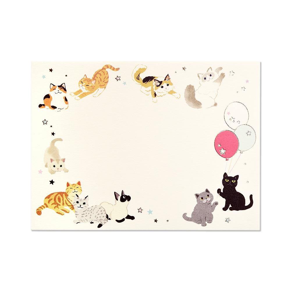 戯れたり跳ねたりまったりしたり、それぞれ楽しく過ごす猫たちのふみ揃え便箋です。