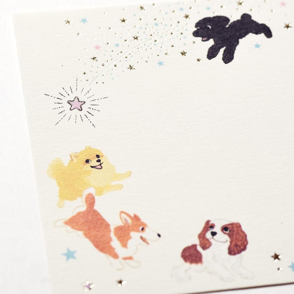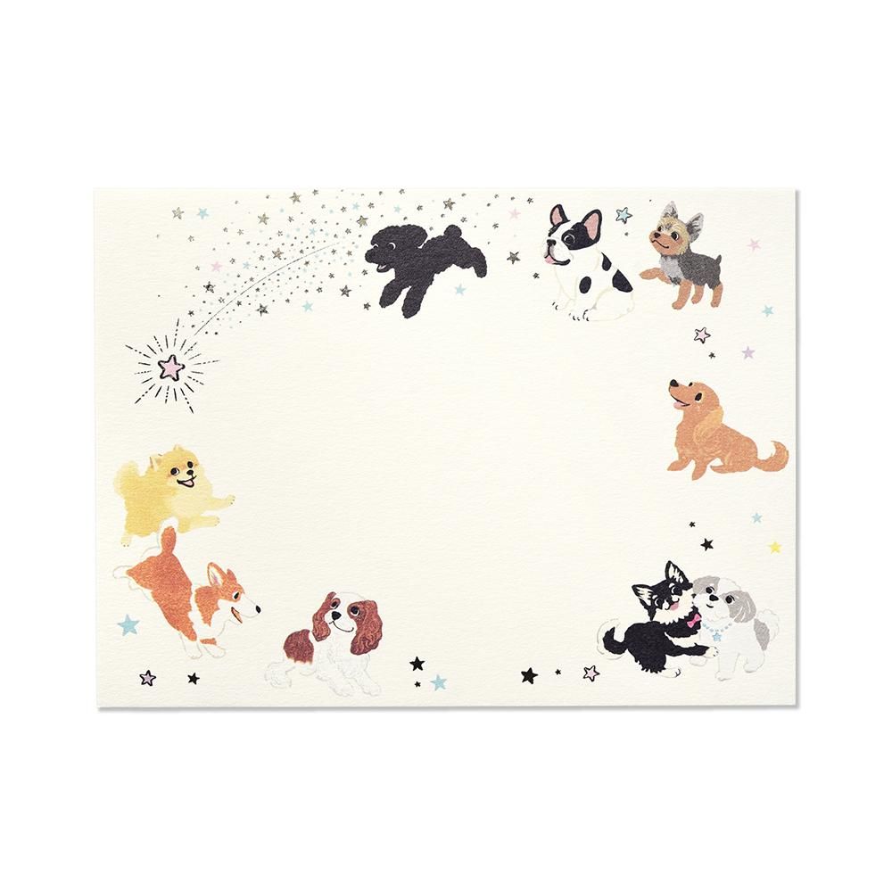 ドッグランで遊ぶ犬たちのように、ワクワクした表情の犬たちが登場します。