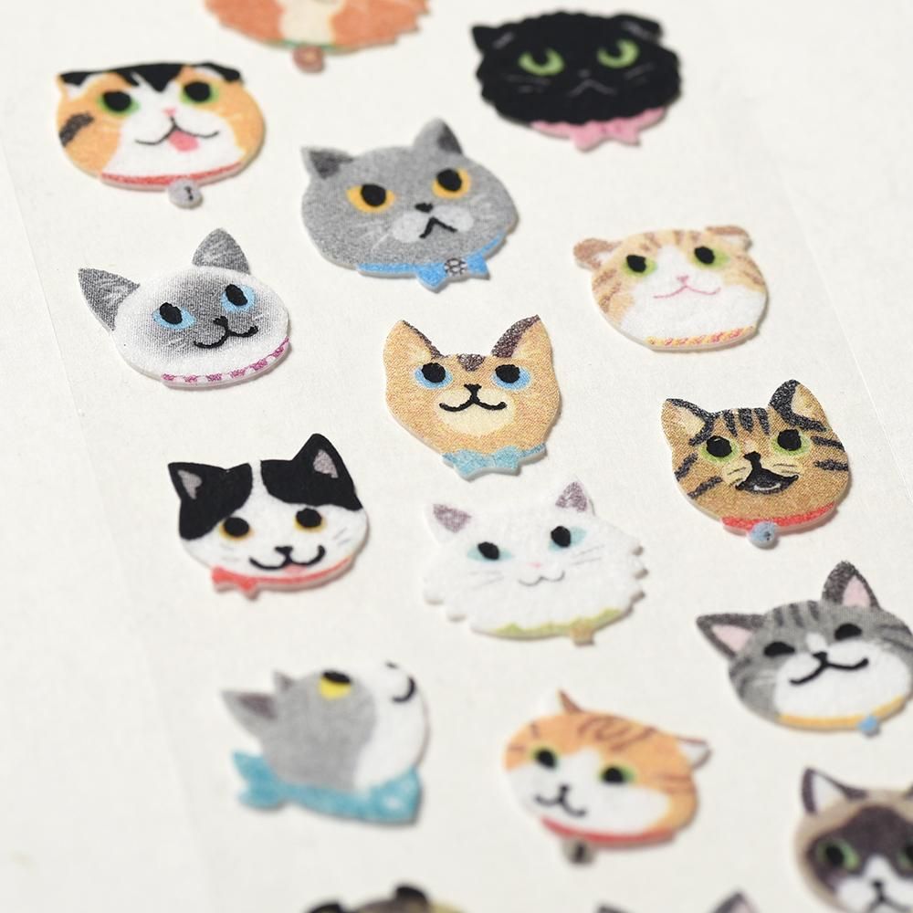 満足感たっぷりの顔やいたずらな顔、猫たちの表情が楽しい、顔のシールです。