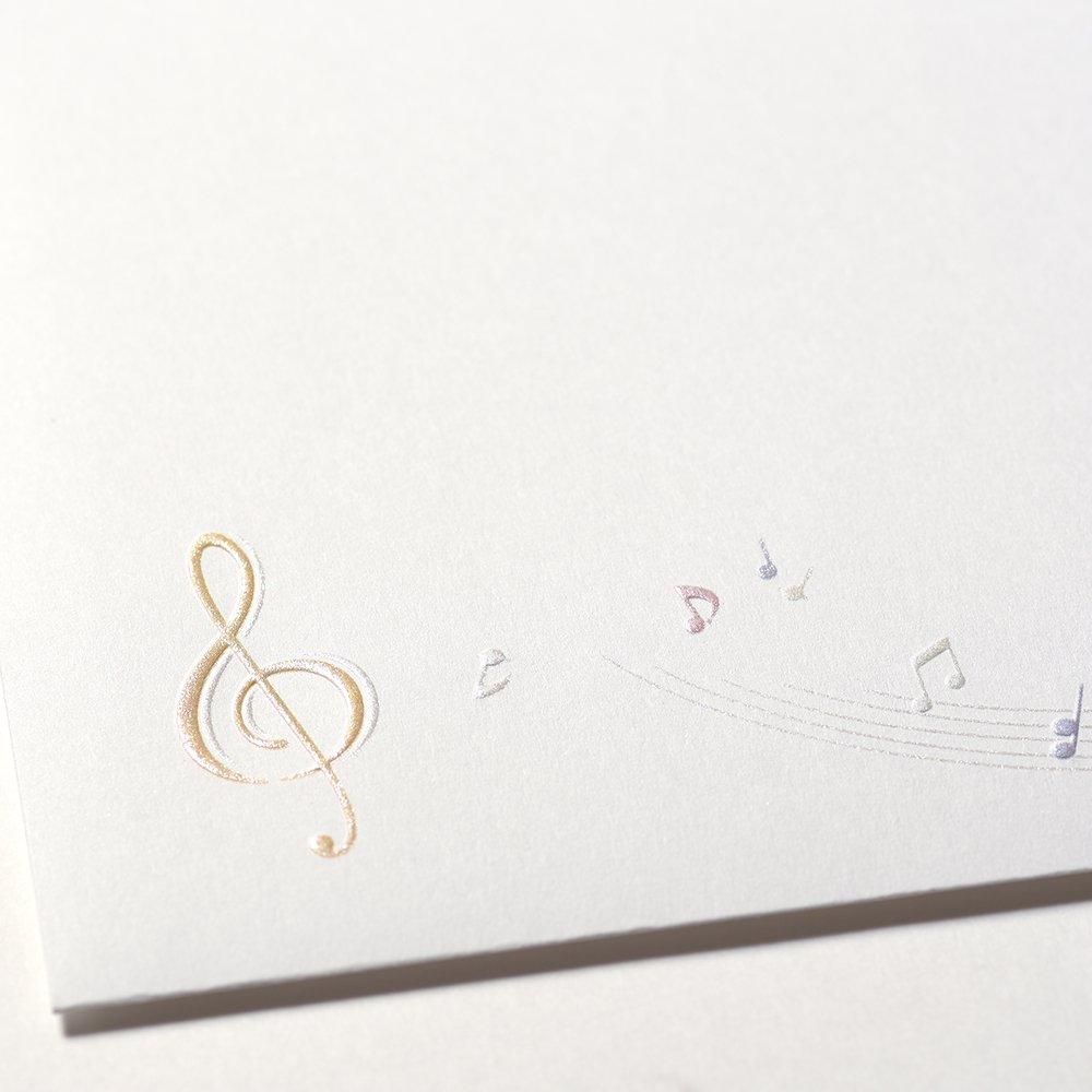 楽しそうな音色が流れてくる様子をイメージした、カラフルで優しい色合いの音符モチーフの封筒です。