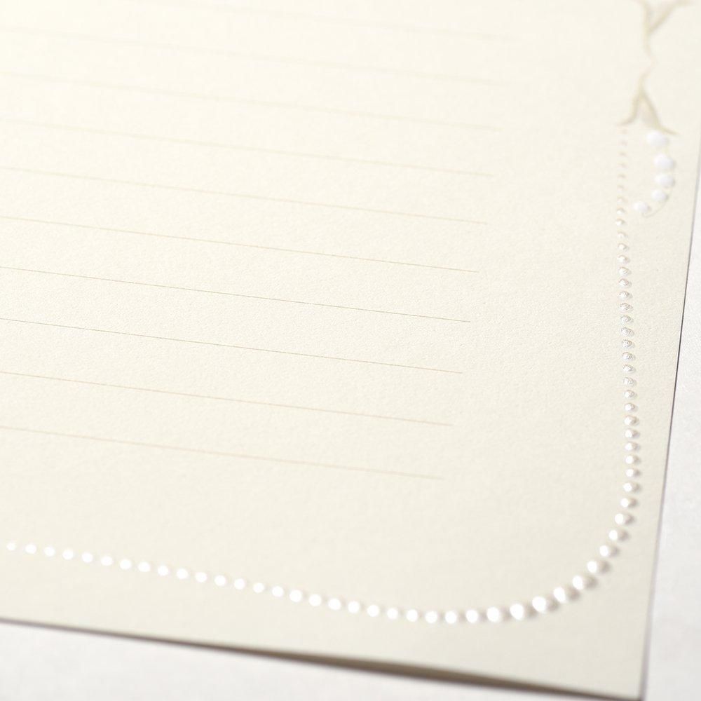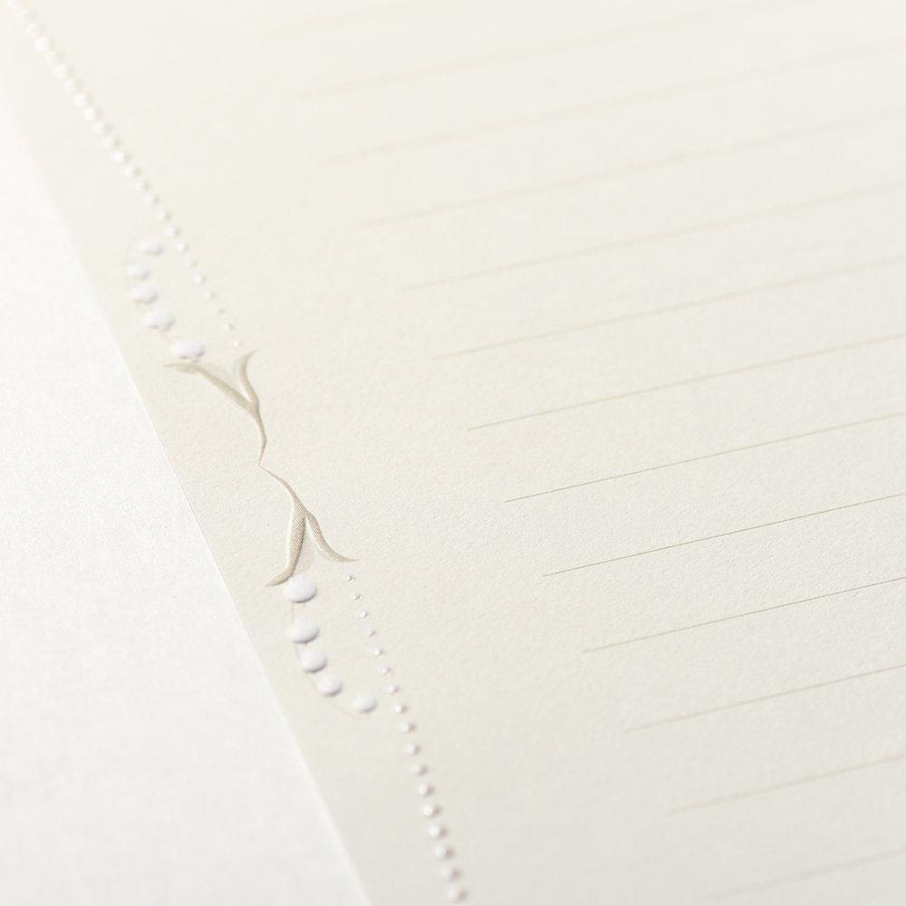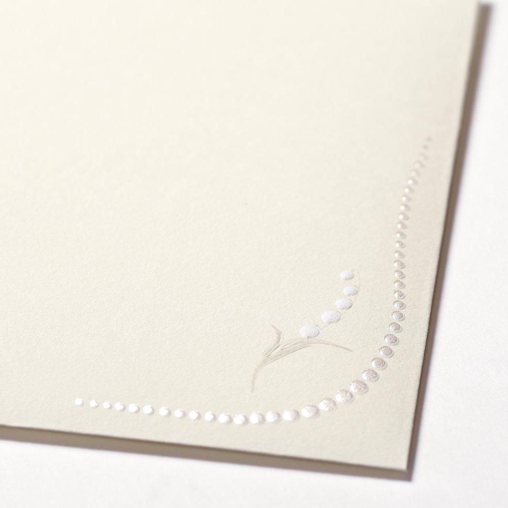 スズランがモチーフのシンプルなデザインにパール感のある浮き出し加工がエレガントな便箋・封筒です。