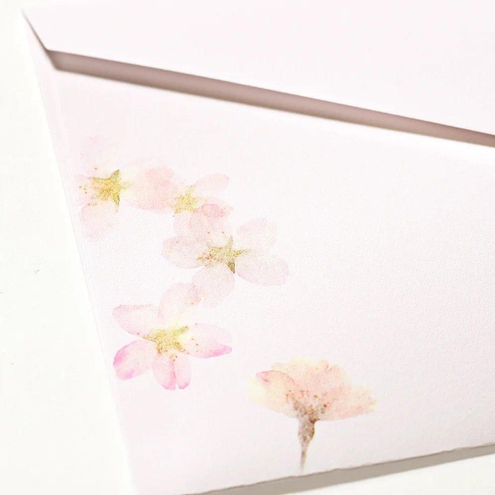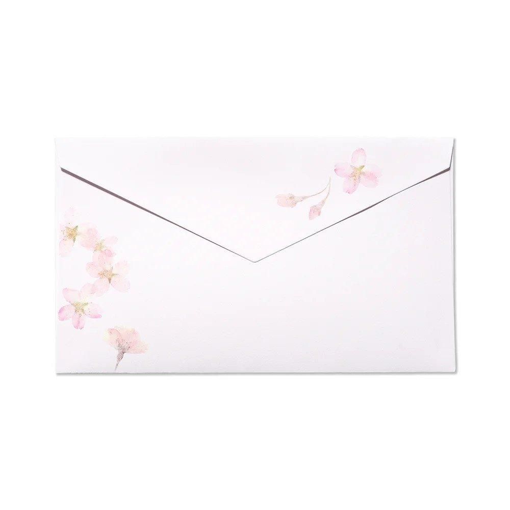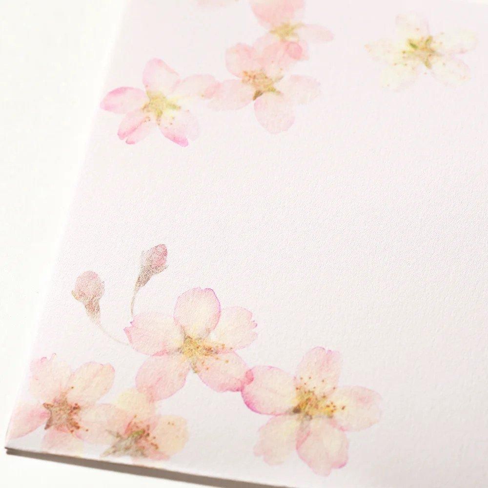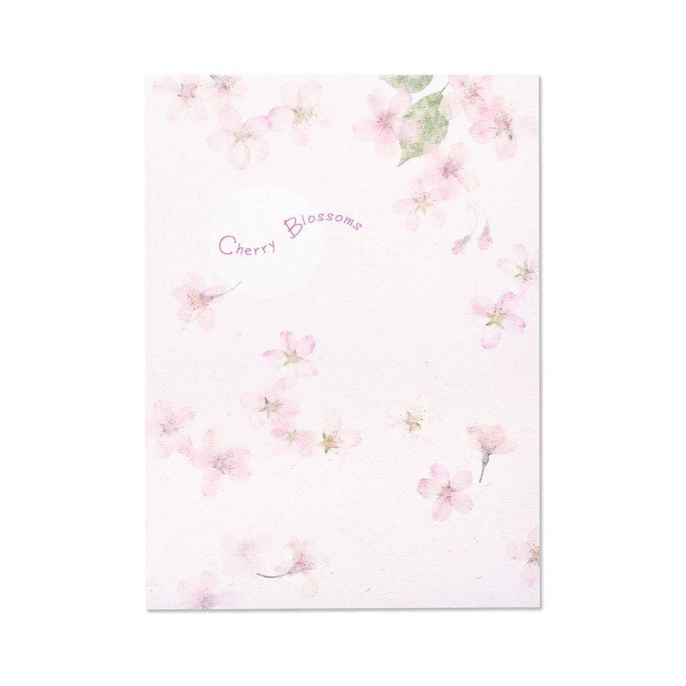 便箋の、押し花にした桜を散りばめた本文は、ホワイトとかすかなピンクの2色入り。