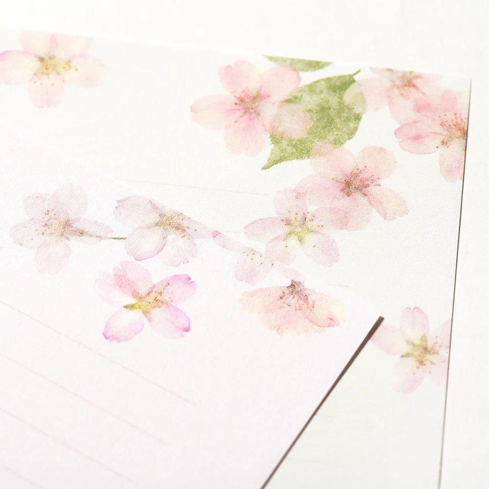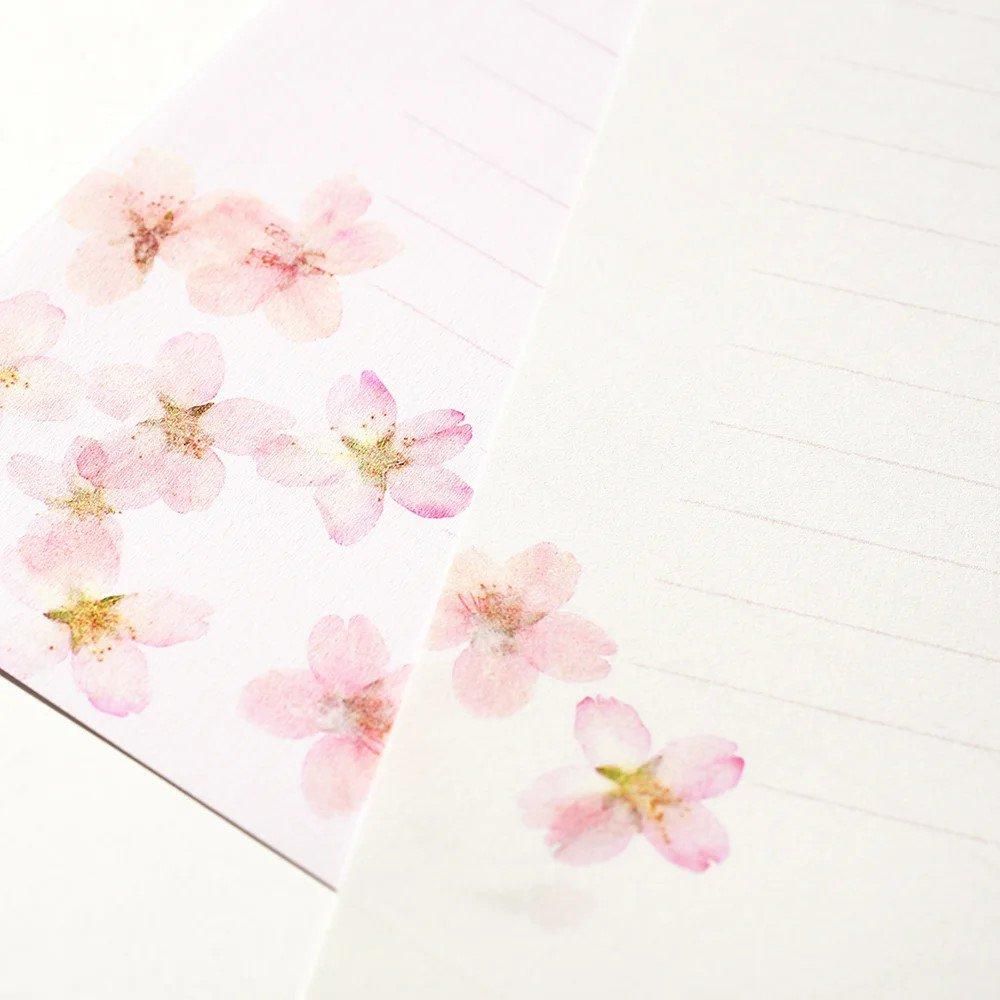 本物の桜を閉じ込めたような、ナチュラルな雰囲気の便箋・封筒です。