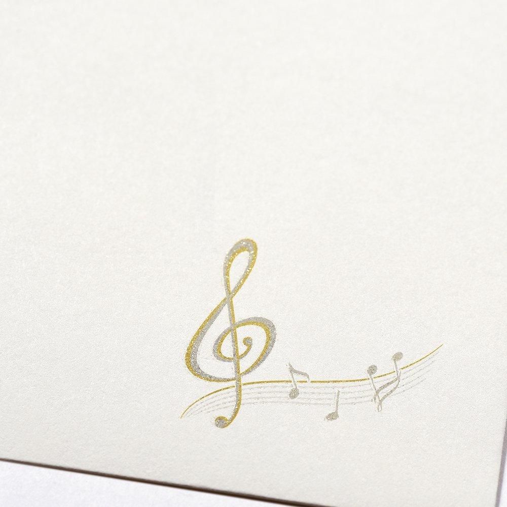 横罫線入りの便箋に、音符モチーフをさりげなく加えたシンプルなデザインで、