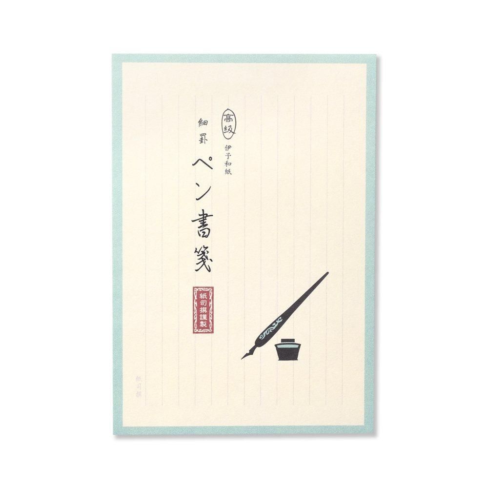 小さな文字でも書きあがった時にしっくりくる細めの罫巾の便箋です。