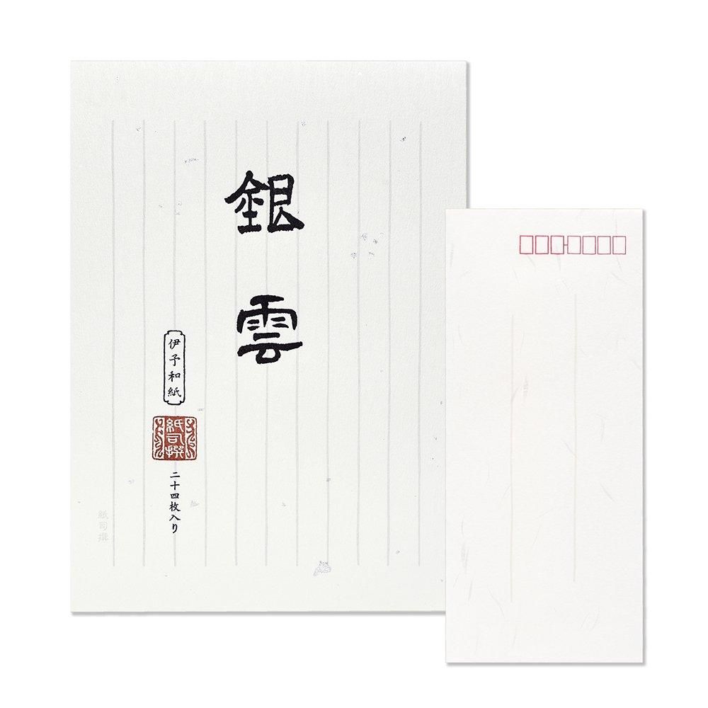 透け感のある「伊予和紙」に、月光に輝く銀雲のような紙糸が織り交ぜられた便箋と封筒のセットです。