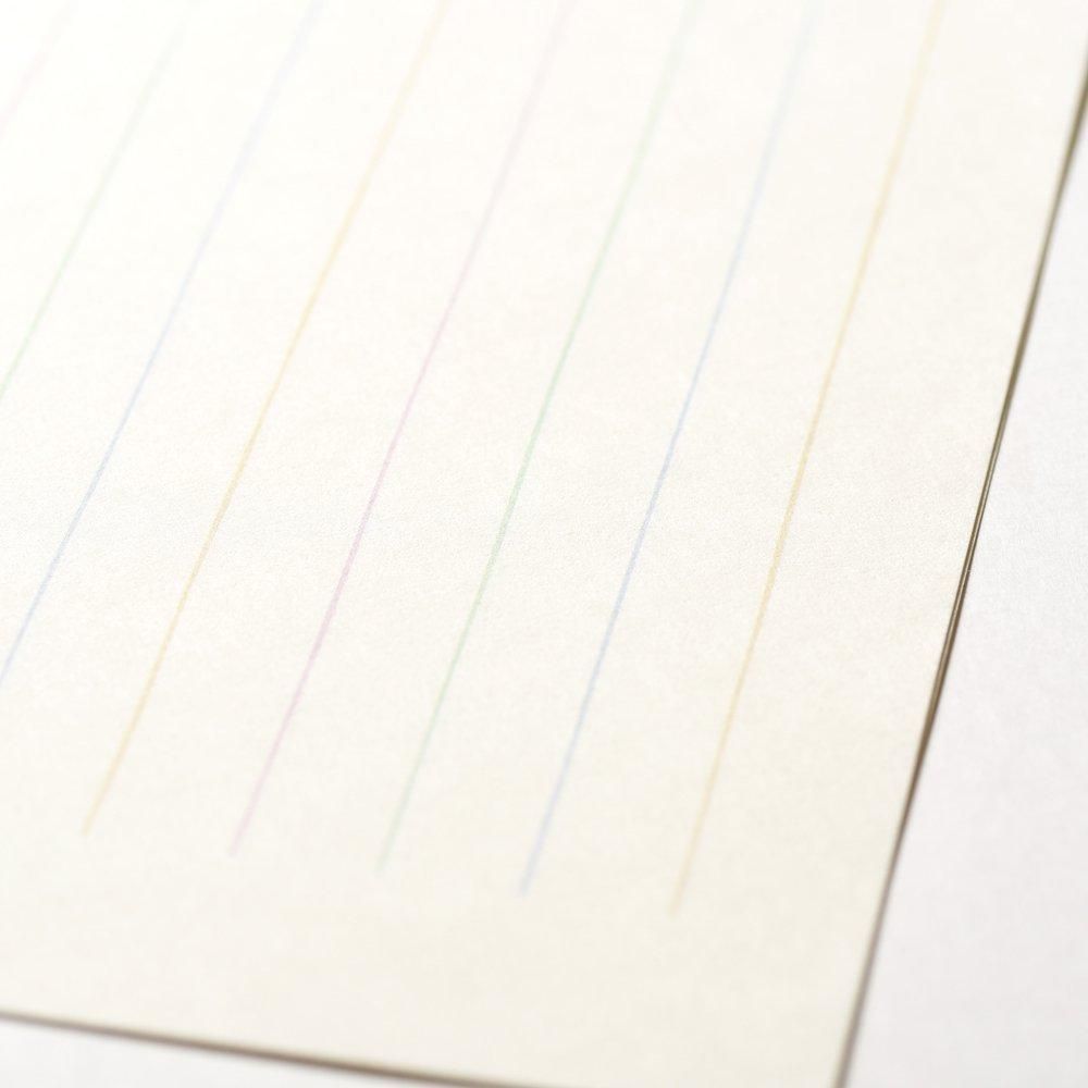便箋の罫線は花のピンク、草木の緑、水のブルー、土や樹のベージュでデザインされています。