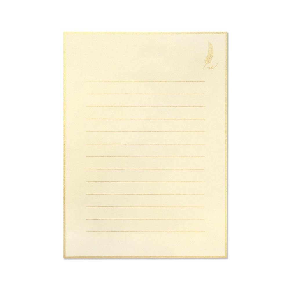 横罫線入りの便箋に、羽ペンモチーフをワンポイントで加えたシンプルなデザインです。