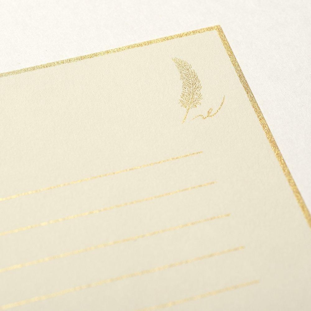 便箋の縁と罫線、封筒のフラップにはゴールドのシルクスクリーン印刷を施しています。