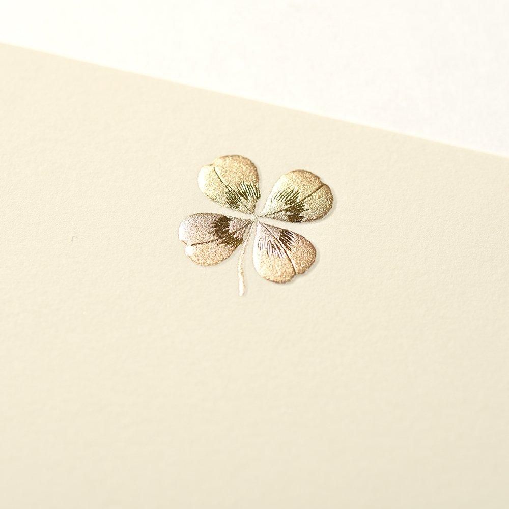 ラッキーシンボルである四葉のクローバーをシンプルに大人向けテイストで描いたワンポイントデザインです。