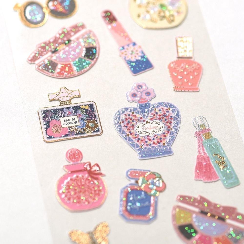 ラメ印刷と金箔でキラキラ感を持たせ絵柄に沿って抜いたダイカットデザインがデコシールにぴったりです。