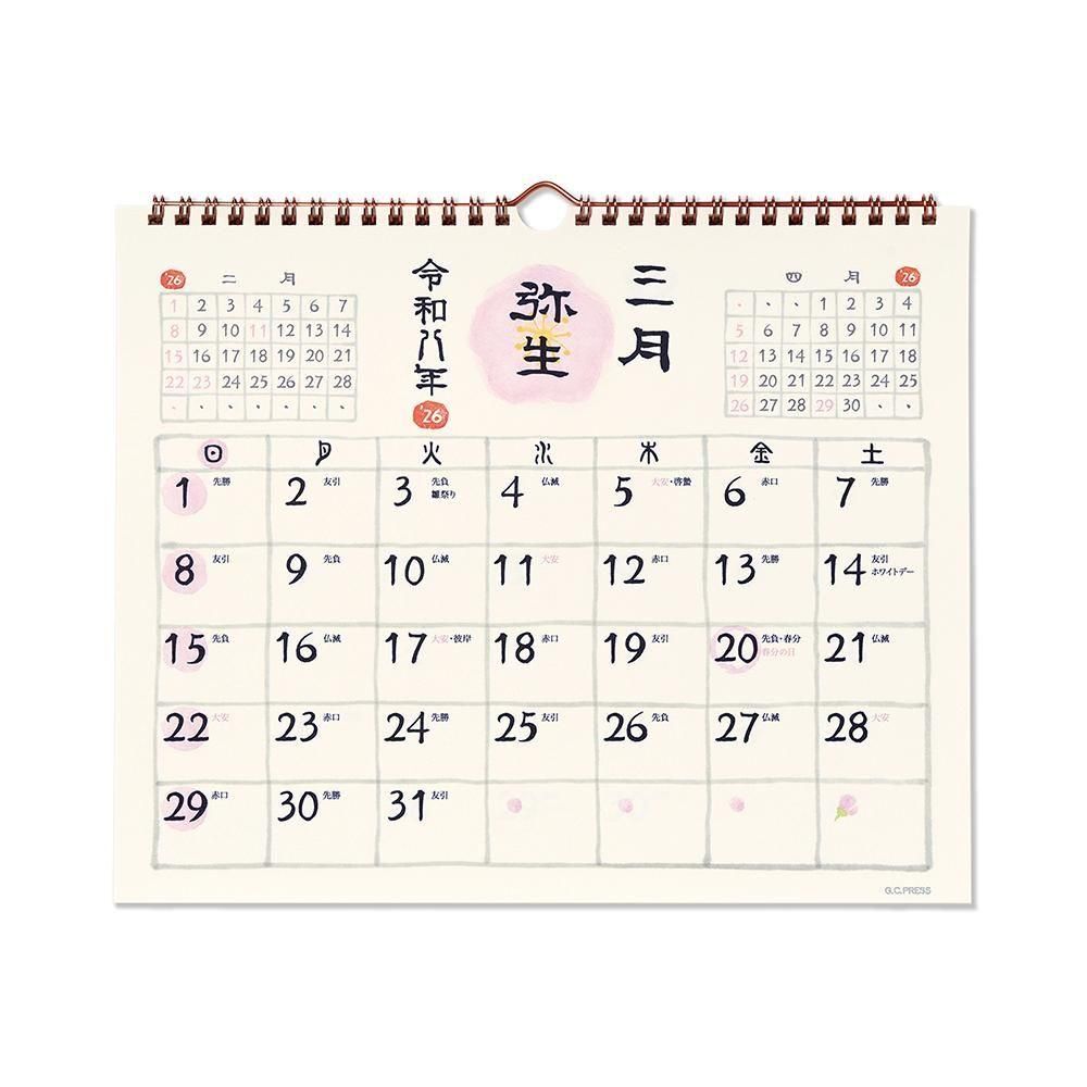 和暦、六曜、二十四節気、雑節、主な行事入り。