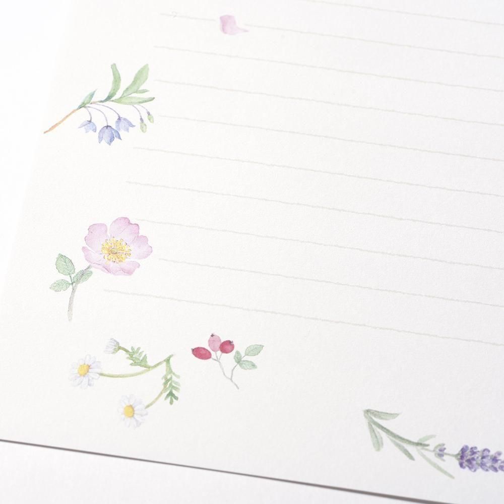 ハーブを中心に馴染みのある小さな花をモチーフにしています。小さな花々を散りばめたシンプルなレターです。